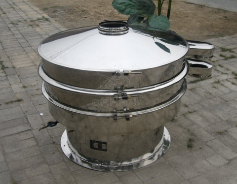 Φ1000型振動篩為直徑1000mm的兩層三個出料口振動篩,子母網分離式網架,接觸物料部分以及防塵蓋均為304不銹鋼材質,底座部分為Q235碳鋼材質。