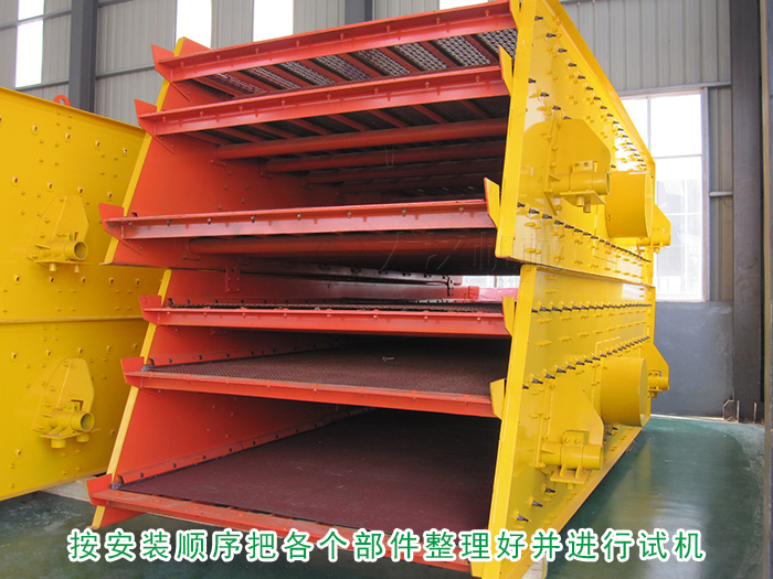 安裝開(kāi)始時(shí)把基礎(chǔ)找平,接著按照支承或吊掛裝置,圓形振動(dòng)篩的安裝圖,按順序把各個(gè)部件整理好,彈簧的裝入可按標(biāo)記的試機(jī)進(jìn)行選配。