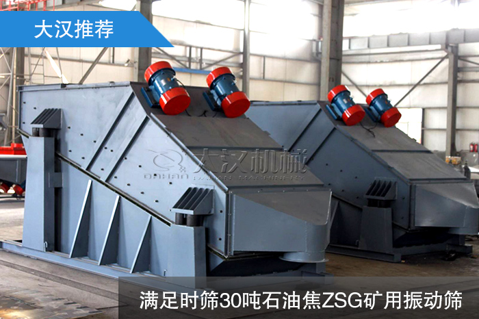 經常有用戶咨詢我們小編,說想要購買每小時可以篩分30噸石油焦的振動篩,但是不知道用哪種振動篩?下面大漢小編為大家具體介紹一款可以滿足時篩30噸石油焦ZSG礦用振動篩