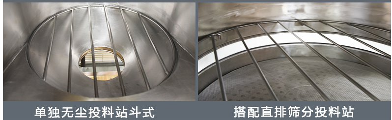 設置格柵,有效防止PE袋與粉末接觸,并配有振動篩(一般是直排篩旋振篩),可有效攔截異物,確保出料合格。