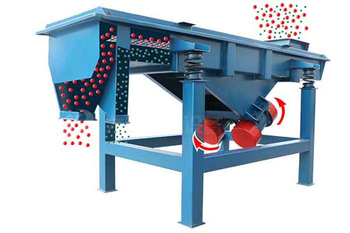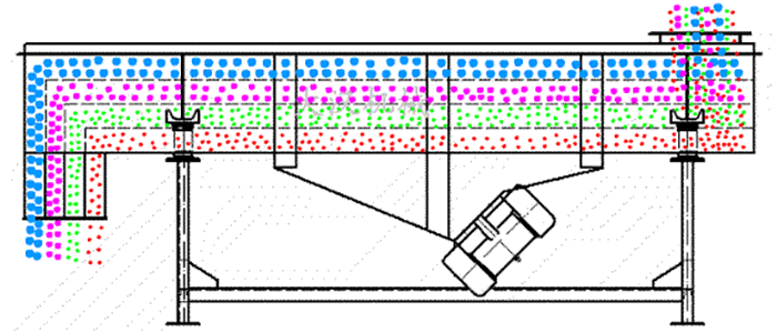 直線型振動篩兩電機軸相對篩面有一傾角,在激振力和物料自重力的合力作用下,物料在篩面上被拋起跳躍式向前作直線運動,從而 達到對物料進行篩選和分級的目的??捎糜诹魉€中實現(xiàn)自動化作業(yè)。