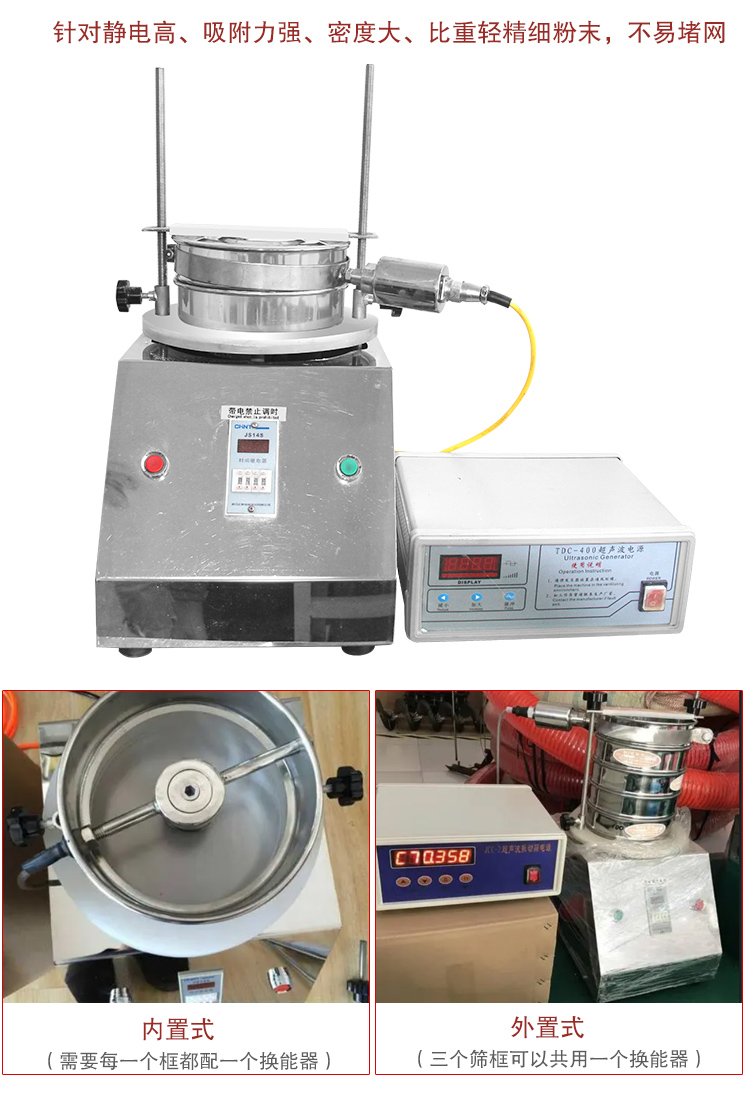 超聲波檢驗(yàn)篩是在普通檢驗(yàn)篩上加裝了超聲波換能器,是一種針對(duì)靜電高、吸附力強(qiáng)、密度大、比重輕精細(xì)粉末的檢驗(yàn)設(shè)備,它篩分細(xì)至低至20微米,而不會(huì)堵塞篩網(wǎng),解決了當(dāng)前實(shí)驗(yàn)篩在做微細(xì)粉分樣時(shí)因團(tuán)聚,靜電,強(qiáng)吸附性卡堵網(wǎng)孔等篩分難題。